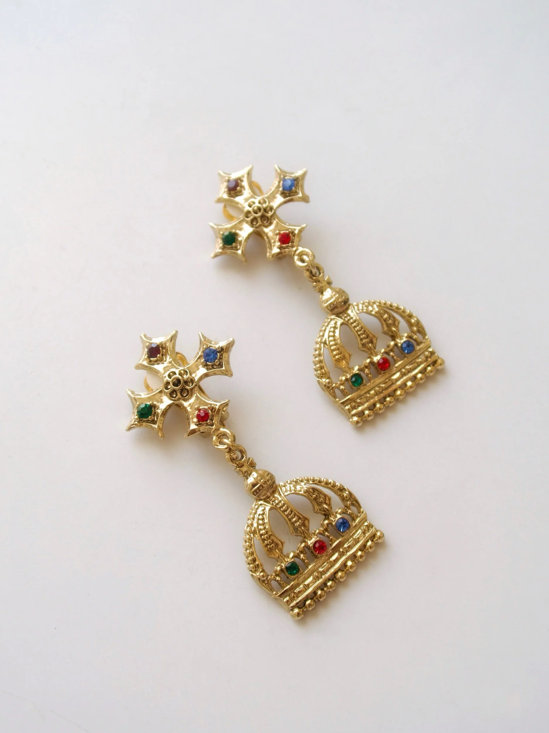 Vintage statement crown earrings