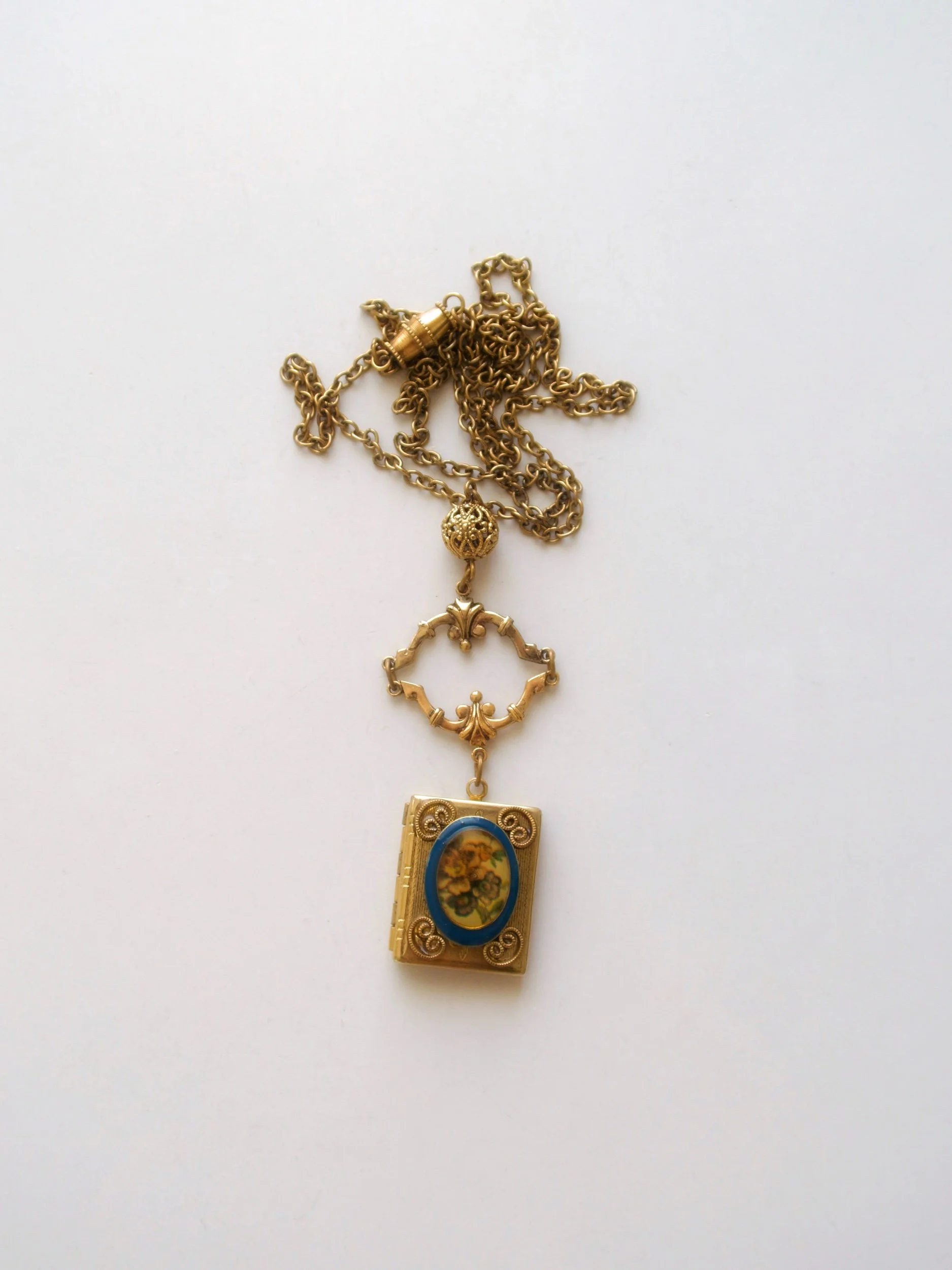 Vintage floral book locket necklace